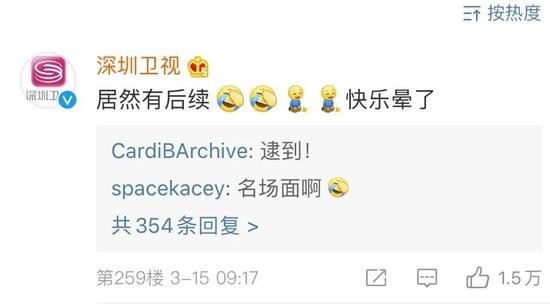 Cardi B对于病毒的重视以及做出的呼吁,受到深圳卫视肯定,还表扬她安全意识挺好: