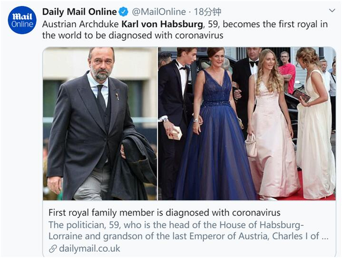 原标题:快讯!奥地利大公确诊感染新冠病毒,系世界首位“中招”皇室成员