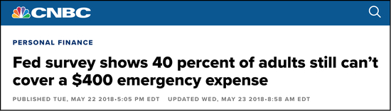 美联储调查显示40%成年人无法承担突如其来的400美元支出(CNBC)