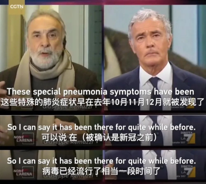 近日,知名欧洲医学界专家朱塞佩·雷姆齐向CGTN独家披露,疑似新冠病毒最早或在十月份已经在意大利、英国进行传播。