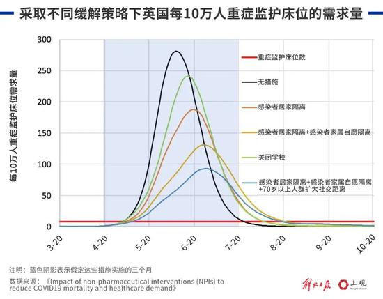 结果发现,如果以缓解为主,就算动用上全部措施并维持三个月,仍会导致重症监护床位的高峰需求超出英国可承受能力的8倍,死亡人数最多只能减半。