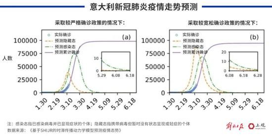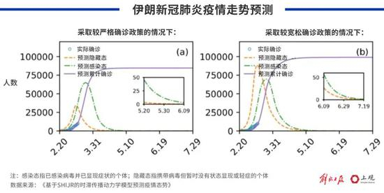 北京师范大学学者龙永尚等人在《基于SHIJR的时滞传播动力学模型预测疫情态势》(以下简称《预测疫情态势》)论文中模拟仿真了意大利、伊朗接下来的疫情传播态势。研究发现,新冠肺炎最后大概导致意大利10万-12万人感染,伊朗8万-11万人感染,目前意大利确诊病例已经超过86000例,伊朗则为35000多例,如以这个模型来看,那么意大利的疫情已经接近尾声,而伊朗的情况则较相对较为复杂。