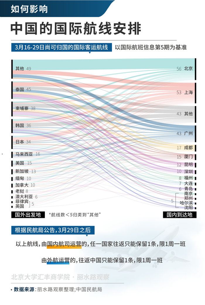 29日之后,限制进一步加强——中国民航局发布继续调减国际客运航班量的通知,以上290条客运航线,由国内航司承运的,往返至任一国家的航线只能保留1条,且每周运营班次不得超过1班;由外航承运的,至中国的航线同样只能保留1条,班次不得超过每周1班。