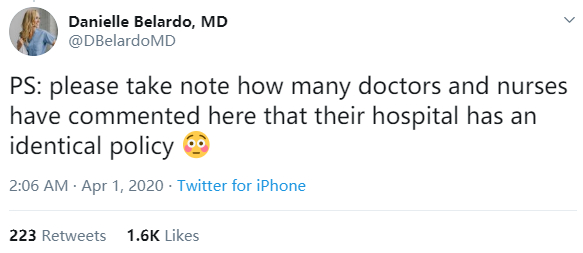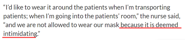 一位名叫Jon Morris的网民就留言说,他们当地的一个创伤中心之前就处罚了数名佩戴口罩的护士,认为这会吓到病人。直到引起公愤后,这个创伤中心才更改了这个政策,允许护士佩戴口罩。