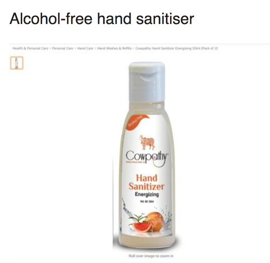 比如一家销售洗手液的企业,产品卖点是“不含酒精”,且是“从本地牛的牛尿中获得的蒸馏水”。疫情期间,该洗手液的网购页面上出现了“限购”“缺货”等关键字。