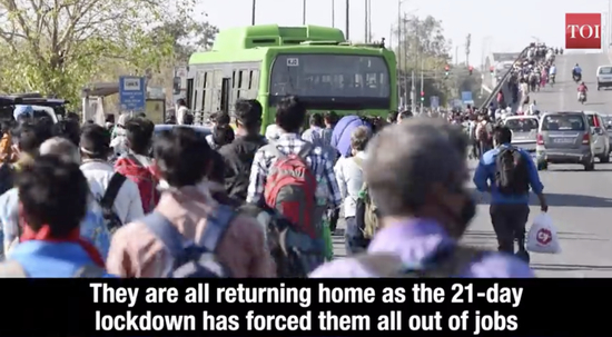 3月底,德里便发生了流动工人大规模返乡的事件。大批工人听信了“北方邦组织返乡”的谣言后,搭乘德里指派的公交车前往北方邦境内。但工人到达后却未见传闻的北方邦返乡车辆,只能选择徒步返乡。