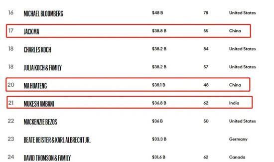 福布斯实时排行榜显示,截至目前,穆克什不仅被马云反超20亿美元,而且还被小马哥后来居上,直接挤至亚洲第三的位置。