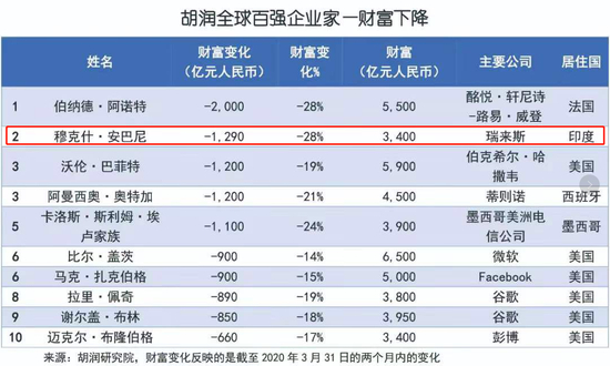 其中,最大“输家”除了奢侈品巨头、LV掌门伯纳德·阿尔诺之外,就是印度首富、石油大亨穆克什·安巴尼。