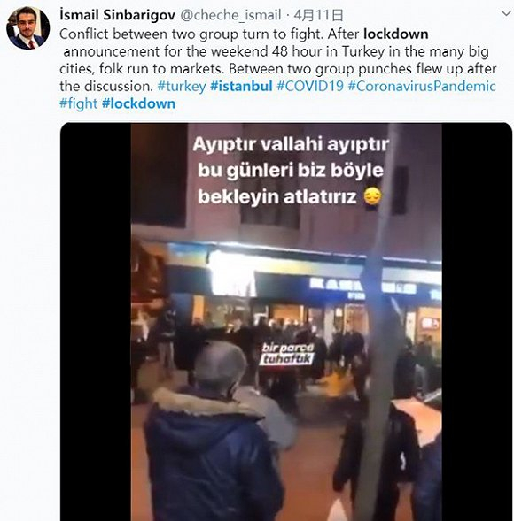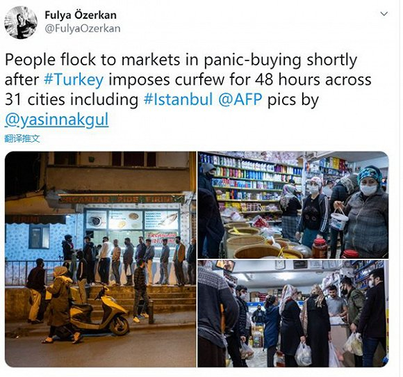 据《泰晤士报》4月12日报道,由于宣布居家令时伊斯坦布尔大部分超市已经关门,得知消息后仅数分钟内,民众便开始在还在营业的小商店外排起长队,部分已经关门的商店则重新开张。