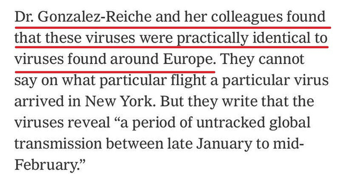 △相关报道截图(病毒似乎是从英国、法国、奥地利和荷兰等几个欧洲国家输入到纽约的)