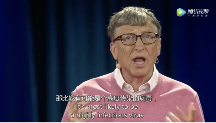 五年前,他说了什么?据报道,在埃博拉疫情暴发后,比尔·盖茨在2015年的一次TED演讲中曾警告说,未来几十年里,如果有什么东西可以杀死上千万人,那更可能是个有高度传染性的病毒,而不是战争;不是导弹,而是微生物。