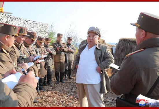 (图说:金正恩在西部地区观摩人民军各军迫击炮兵部队的炮击训练,图源:朝中社)