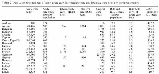 《重症监护医学》期刊2012年的一篇文章曾对欧洲各国的ICU条件进行比较。统计显示,比利时的医疗系统为欧洲最好之一,平均每10万人有15.9张重症监护和中期照护床位。高于意大利的12.5、法国的11.6和英国的6.6张。