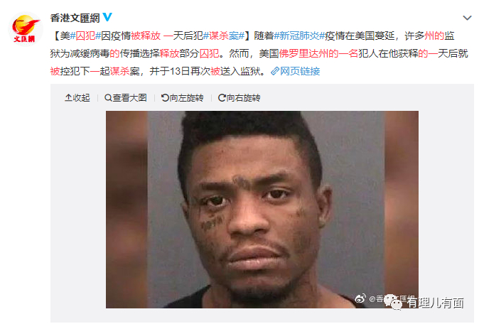 不仅如此,别忘了这些人都是囚犯!他们很有可能重新成为社会治安秩序的破坏者和重大安全隐患。就在上个月,佛罗里达州一名囚犯因疫情被释放,在获释的一天后就被控犯下一起谋杀案,再次被送进监狱……