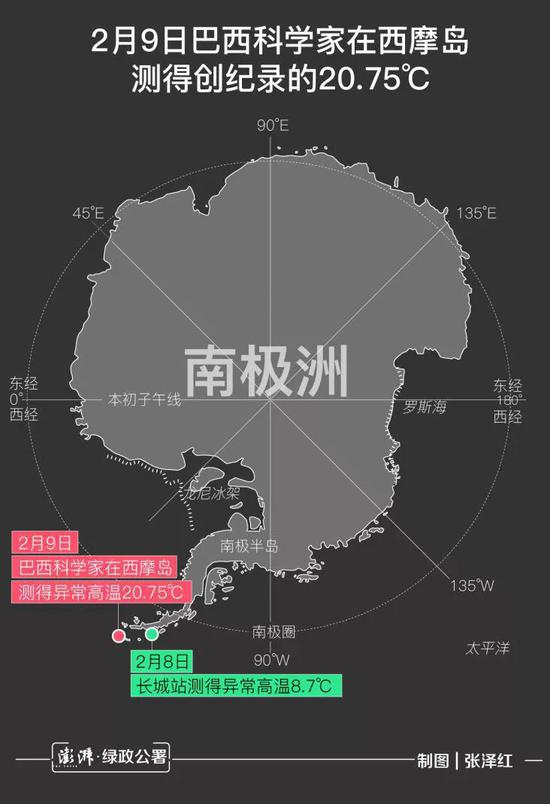 2月9日,巴西科学家在南极洲西摩岛记录下了20.75℃的高温天气!这比该岛1982年记录的19.8℃高了近1℃(18.3℃的记录为南极大陆的最高温纪录)。