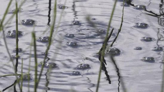 研究认为,这跟气候变暖有关。受此影响,北极地区的冻土层快速融化,到处都是冰水形成的湖泊,以前“封印”在冻土层中的大量甲烷从湖水中冒着泡涌出。