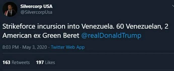 因为,就在这篇美联社的报道发布的次日,10多名仍在跟随古德罗的叛军士兵,以及来自古德罗那个“银色军团”的美籍人员,居然乘坐两艘小渔船对委内瑞拉发起了“登陆战”,而且这帮人以及古德罗本人还在不断在社交网络上发帖,直播了这次“军事”行动。