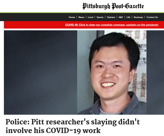 近日,美国匹茨堡大学一名研究新冠病毒的中国研究人员遭枪杀的事情,引起中美媒体的广泛关注和报道。