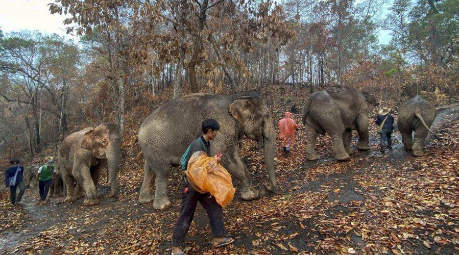 由于外国游客稀少,商业性质的大象营地缺乏养育大象的资金,因此100多头大象需跋涉150公里返回它们的老家。