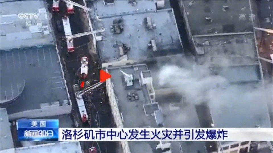 航拍美国洛杉矶市中心突发爆炸,疑涉及大麻油仓库