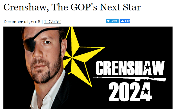 2018年,凭“战斗英雄”的光环和边境及移民问题的保守主张,克伦肖在得克萨斯州国会选举中击败民主党对手,当选联邦众议员。克伦肖以其民粹立场和犀利的辩论能力在美国政坛迅速走红,与民主党新一代众议员科尔特斯一起被称为国会山“双子星”。美国媒体不断有人称其为“2024年的共和党总统候选人”。还有人设想克伦肖和科尔特斯将会出现在2028年总统选举的对决中。
