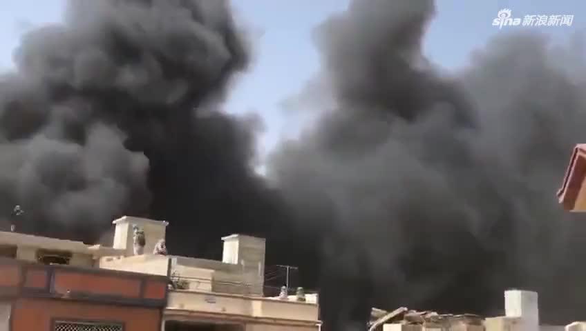 巴基斯坦坠毁瞬间 现场浓烟滚滚