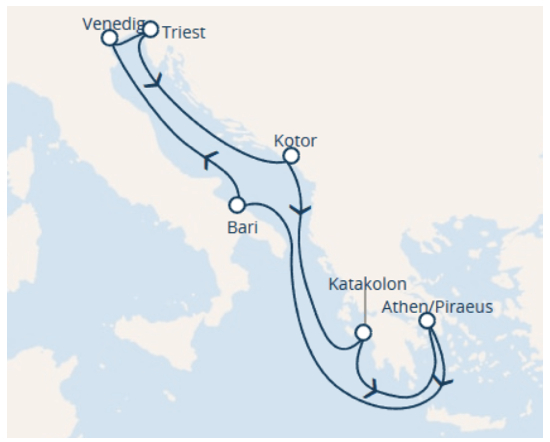 地中海邮轮经典航线,母港和始发港一般定于的里雅斯特港,而非比雷埃夫斯。图源:TUI