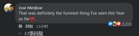在特朗普发布的这段“抬棺”视频下方,网友Menjivar评论称,“这绝对是我今年到目前为止看到的最好笑的东西了。”↓