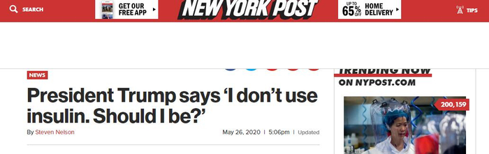 不过,《纽约邮报》注意到,活动早些时候,特朗普讲述了胰岛素对于糖尿病患者至关重要的原因。“如果你不服用胰岛素,我只是把(后果)罗列下,你会失明、中风、截肢、肾衰竭等。。。。。。”
