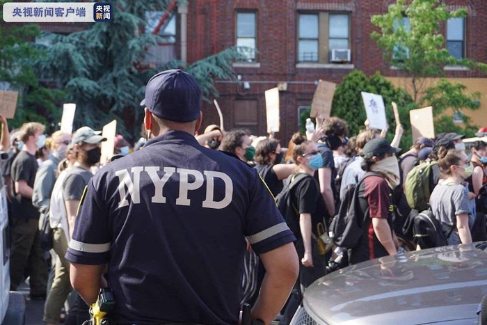 当地时间5月30日下午,纽约市抗议警察暴力示威游行进入第三天,当天在纽约布鲁克林、曼哈顿、布朗克斯和皇后区多个地点爆发游行,要求定罪虐待乔治·弗洛伊德的白人警察。