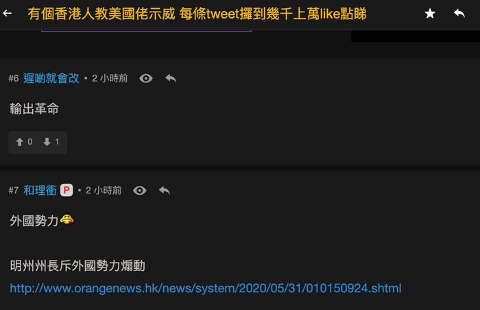 “连登”论坛上,已经有人在出谋划策,提醒面对美国示威如果“不熟悉当地政治的话,不要乱介入”,“建议提‘独立调查’‘惩处’,主张人道主义(alllivesmatter)即可”,因为这样“既让人联想香港面临同样警暴问题,又不会得失任何一方”。也有人或许因为感觉不妙,开始杜撰此账号为“大陆人所扮”,不过,这种猜测很快被其同伴纠正:“应该是香港人。”