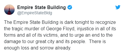 原标题:纽约帝国大厦今晚熄灯:纪念弗洛伊德的“悲剧性谋杀”及“一切形式的不公正”