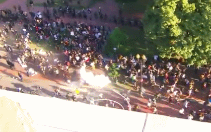 值得注意的是,特朗普在讲话时,警方在白宫外与和平抗议者们对峙,并最终用催泪弹、闪光弹和橡皮弹将他们驱散,得以为特朗普去教堂拍照扫清道路。