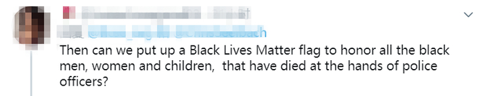有网友喊话称,“如果这样,我们是不是也要竖起一面‘黑人生命同样重要’的旗帜,向所有死于警察之手的黑人男子、妇女和儿童致敬?”