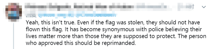 美网友也纷纷发声抗议。有网友表示,即使国旗被盗了,他们也不应该悬挂这面旗帜,这相当于说,美国警察相信,自己的生命比他们应该保护的人更重要,批准这样做的人应该受到严惩。