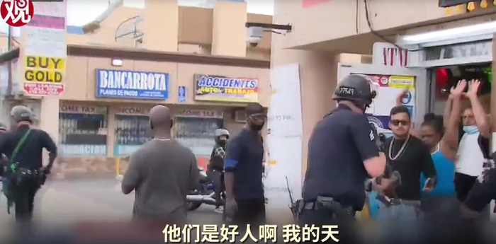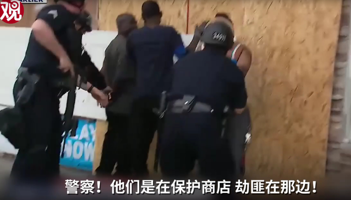 [文/观察者网 张晨静]美国民众为反种族歧视正掀起一波又一波的抗议潮,然而6月1日在洛杉矶一处社区却发生了这样荒诞又讽刺的一幕:几名好心的黑人欲阻止暴力示威者抢劫,却被赶到现场的警察当做劫匪给铐了起来。