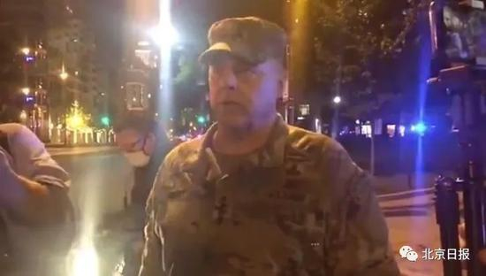 米利6月1日晚上出现在华盛顿特区街头,表示“支持言论自由”