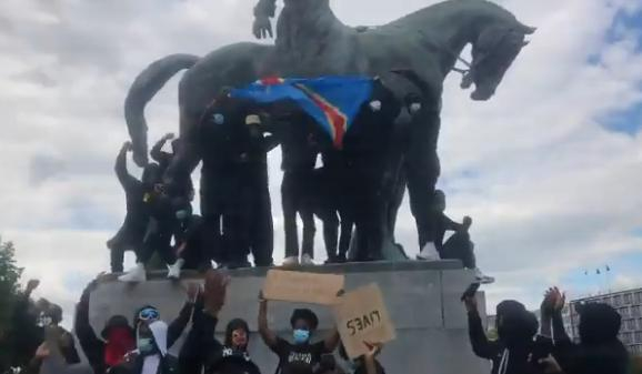 美国《新闻周刊》称,示威者聚集在布鲁塞尔,有人站在这位前殖民时代国王的雕像基座上,有人则围在四周,示威者高呼着“凶手”。从社交媒体上流传的视频还能看出,有人手里还展示着刚果(金)国旗。