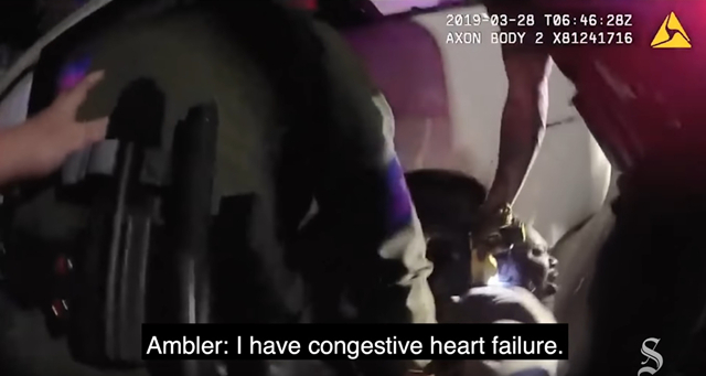 执法记录仪视频截图安布勒在哀求“我有充血性心力衰竭”,遭到电击