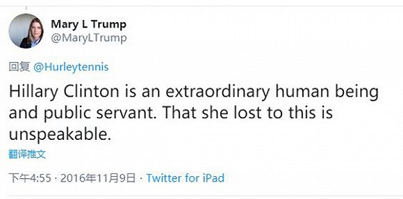 现年55岁的玛丽此前一直保持低调,很少使用社交媒体。她与特朗普的矛盾可以追溯到20年前。