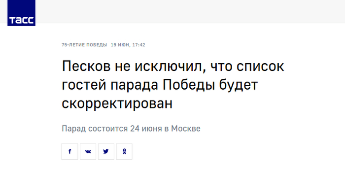 原标题:克宫:可能会对出席俄阅兵式国家领导人名单进行调整