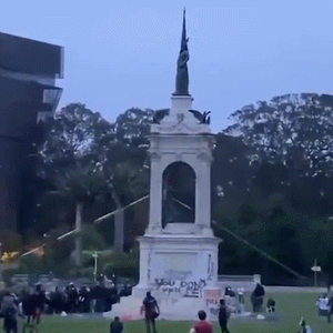 据美国广播公司(ABC)报道,当地时间周五(19日)晚8点左右,约400名示威者聚集在旧金山金门公园,园内的弗朗西斯·斯科特·基(Francis Scott Key)雕像被示威者套上绳子然后拉倒。基是美国国歌《星条旗》的词作者,但也是蓄奴者。