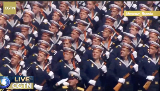 俄罗斯各个方阵亮相。/CGTN直播截图