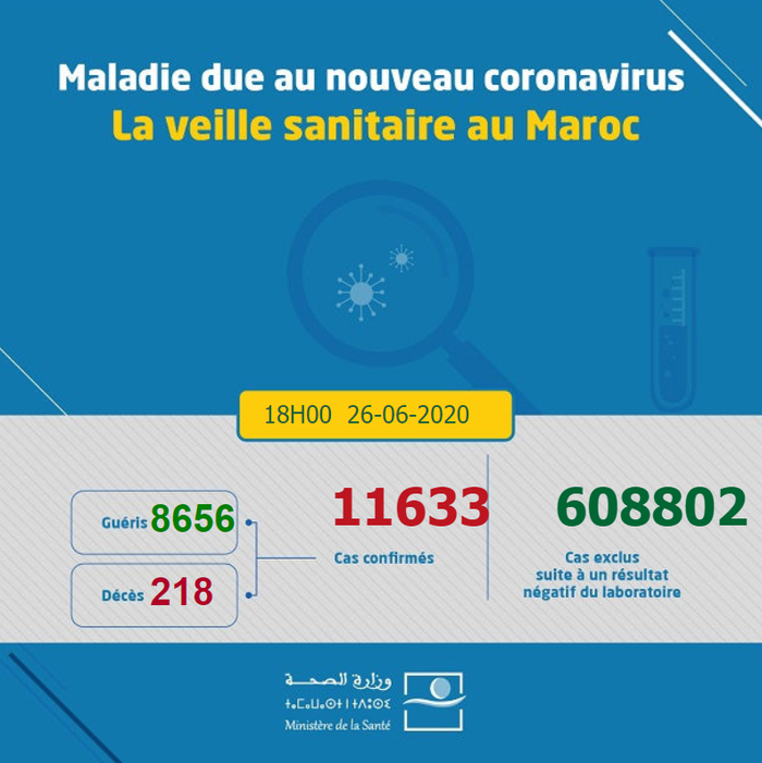 摩洛哥卫生部6月26日证实,从当日10时至当日18时,该国新增168例新冠肺炎确诊病例。