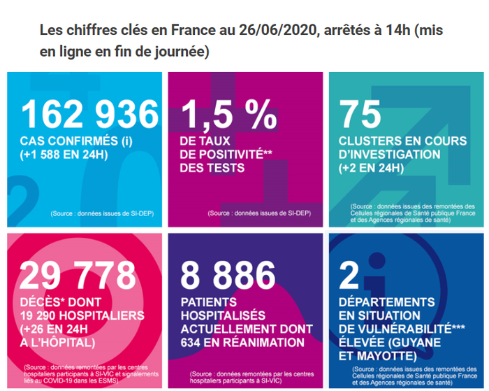 据法国公共卫生部门26日发布的数据,截至当天下午2点,法国新冠肺炎死亡病例升至29778例,24小时内增加26例。法国新增新冠感染确诊病例1588例,累计确诊162936例。5月9日以来,法国已经确认277起聚集性感染,新增1起,另外还有75起聚集性感染在调查中。