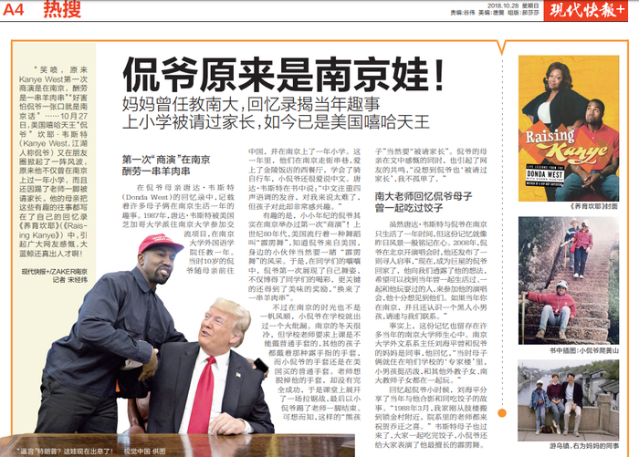 现代快报讯(记者 陆雨潇)当地时间7月4日,美国知名歌手“侃爷”——坎耶·维斯特(Kanye West,以下简称“侃爷”)在社交软件宣布,自己将参与2020年美国总统的竞选。此消息一经宣布,就登上了社交平台热搜榜第一名,并引发海内外热议。据悉,“侃爷”母亲曾在南京大学执教过一年,当时他就在南京上过小学。