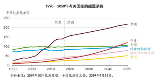 美国能源信息署预测,到2050年,印度的一次能源消费将保持年均3.9%的增速。预计从本世纪40年代中期开始,印度将超过美国,成为仅次于中国的世界第2大能源消费国。