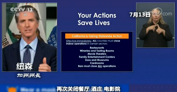 7月13日,加州州长纽森宣布,对全州商业活动重新实施管控。