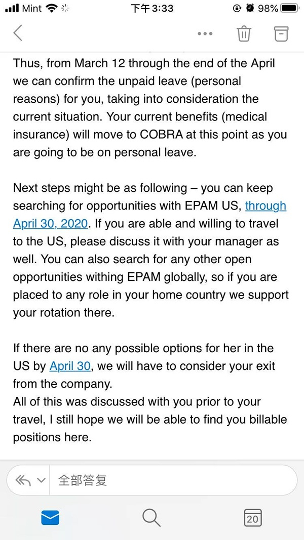 他收到的邮件的意思很明确:“由于疫情,公司业务缩减,你的职位也受到了影响。”