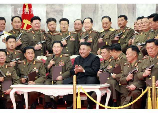 原标题:金正恩罕见赠核心指挥员纪念手枪 金与正也在场